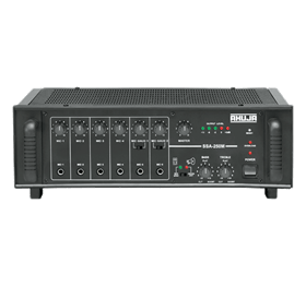 Mixers: Ahuja provides a variety of audio mixers designed to manage multiple audio sources, offering precise control over sound levels, tone, and effects, making them ideal for both live events and studio use.